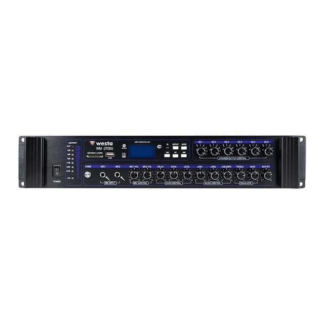Westa WM-2700U 700W USB/BT/SD 6 Bölgeli Hat Trafolu Mikser Amfi, ses sistemleri dünyasında güçlü ve çok yönlü bir çözüm sunar. Bu amfi, etkileyici 700W çıkış gücü ile her türlü ses ihtiyacınıza karşılık verir. İşte bu ürünle ilgili önemli özellikler ve detaylar: