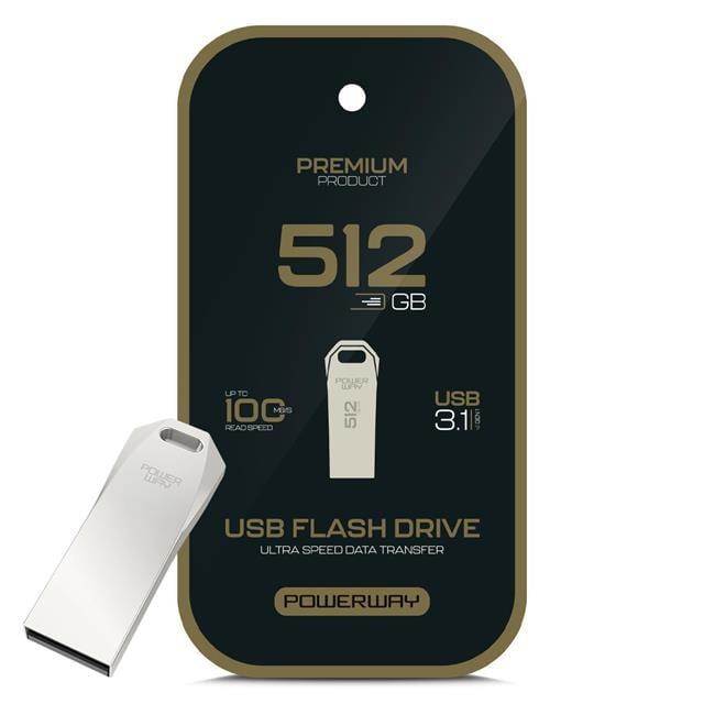 Powerway Premium 512 GB USB flash bellek, yüksek hız ve premium dayanıklılık sunan bir depolama çözümüdür. 100MB/s okuma hızı ile ultra hızlı veri transferi ve dosya yedekleme imkanı sağlar. Metal gümüş renkli gövdesi ile şık ve modern bir tasarım sunarken, aynı zamanda dayanıklı ve uzun ömürlü kullanım sunar. 512GB geniş depolama alanı sayesinde binlerce dosya, fotoğraf, video ve müzik koleksiyonunuzu taşıyabilirsiniz. USB 3.1 teknolojisi ile geriye dönük uyumludur ve USB 2.0/3.0 portlarında da çalışabilir. Suya, toza ve darbelere karşı dayanıklı yapısı ile güvenilir veri depolama sunar.
